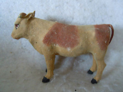 Title (ebay affiliate link): VINTAGE GERMAN FLOCKED COMPOSITION COW FIGURE-FOR PUTZ