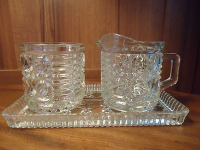 Title (ebay affiliate link): Federal Glass Co. Windsor Pattern Sugar Bowl Creamer w/Tray Button & Cane 3 pcs