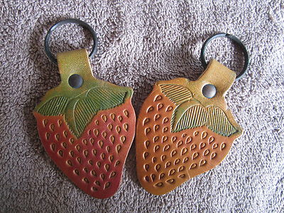 2 vintage LEATHER Strawberry KEYCHAINS ~ NEW