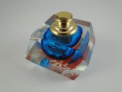 Title (ebay affiliate link): Vintage Art Glass Paperweight Perfume Bottle Scent Blue Orange Flower Old Retro