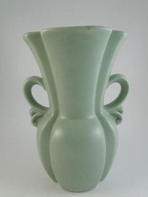 Title (ebay affiliate link): Vintage Art Pottery McCoy Ribbon Handle Table Vase Mint Green Retro Old Antique