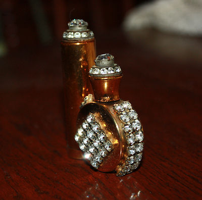 Title (ebay affiliate link): vintage mid century deco rhinestone mini perfume bottle lipstick combo compact