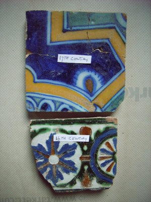 2 - ANTIQUE SPANISH 17th + 16th CENTURY TILES.