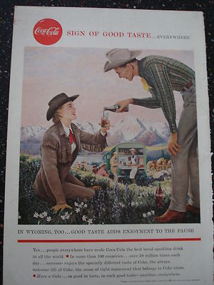 Title (ebay affiliate link): COCA COLA BACK PAGE AD 1958 WYOMING COWBOY SCENE