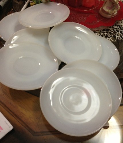8 Anchor Hocking Fire King Glass Milk White Replacement Coffee Saucers