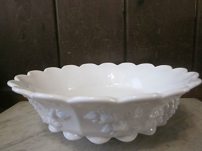 Title (ebay affiliate link): WESTMORELAND PUNCH BOWL Marked Milk Glass 12" 5 lbs Vintage Paneled Grape Flower