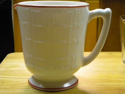 Title (ebay affiliate link): VINTAGE MEASURING CUP/PITCHER RARE RED & WHITE 4 CUP MILK GLASS ( like vitrock)