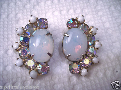 Title (ebay affiliate link): HUGE JULIANA vintage FAUX OPAL, MILK GLASS & AB rhinestones earrings PRETTY