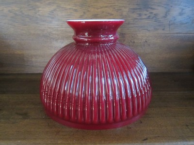 ANTIQUE VINTAGE CRANBERRY RIBBED MILK GLASS 10" SHADE