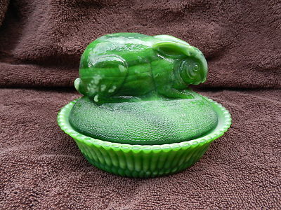 Boyd Green Milk Glass Domed Top Rabbit Covered Dish