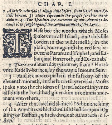 Title (ebay affiliate link): ORIGINAL 1610 PILGRIMS BIBLE LEAF in ENGLISH WOODCUT INITIAL NUMBERS DEUTERONOMY