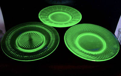 GREEN VASELINE DEPRESSION GLASS PLATES set of 3
