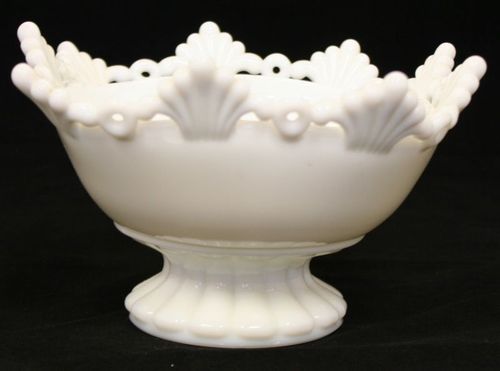 Title (ebay affiliate link): VTG White Milk Glass Pedestal Bowl Compote with Fleur De Lis Edges