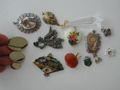 Title (ebay affiliate link): Vtg Assorted CHARMS PENDANTS Findings LOT Enamel milk glass Pewter, sterling