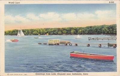 Title (ebay affiliate link): Indianola Iowa Ahquabi vintage Boat water view postcard