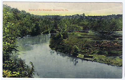 Title (ebay affiliate link): 1900's PC Scene on the Shenango - Sharpsville PA 3 Railroad Bridges in View