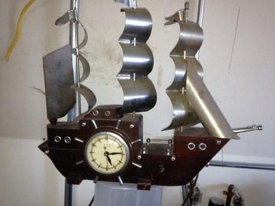 ANTIQUE MANTEL SHELF ELECTRIC METAL SAILS DARK WOODEN SHIP UNITED CLOCK CORP.
