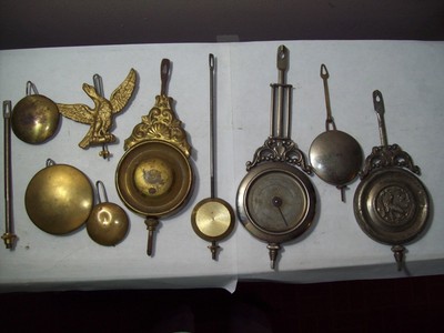 Title (ebay affiliate link): LOT ANTIQUE VINTAGE BRASS CLOCK PART PENDULUM WEIGHTS NICKEL TIN