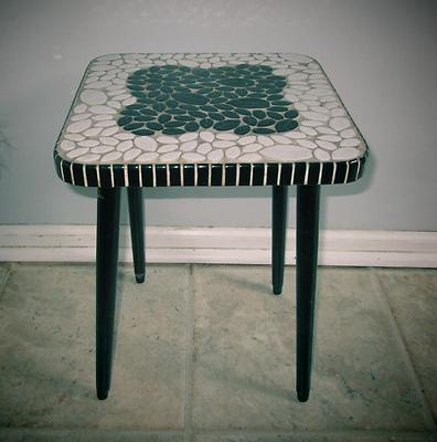 Title (ebay affiliate link): VTG MID CENTURY MODERN MOSAIC TILE TOP SIDE TABLE LEAF DESIGN TILES