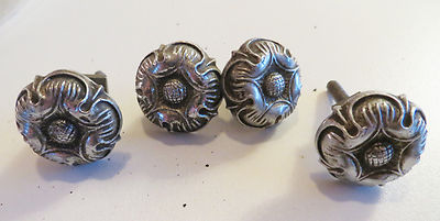 4 Silvertone Small but Heavy Flower Motif Knobs #DD