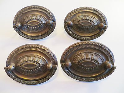 4 Fancy Brass Oval Pulls / Handles #FF