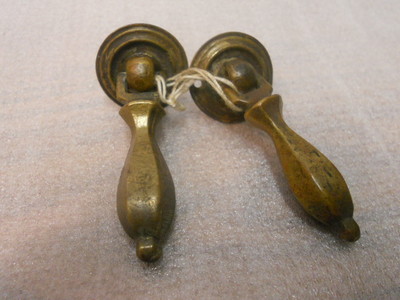 Title (ebay affiliate link): 2 ANTIQUE VINTAGE BRASS DROP FURNITURE PULL HANDLE PART