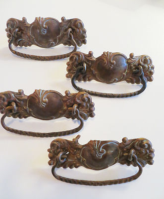 4 Antique Brass Victorian Handles / Pulls #QQ