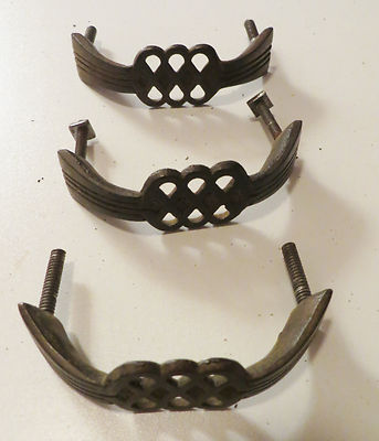 3 Heavy Brass Pierced Art Deco Pulls / Handles #XX