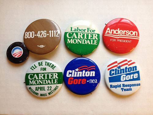 Title (ebay affiliate link): Twelve Democratic presidential campaign pins buttons Obama Gore Clinton Carter