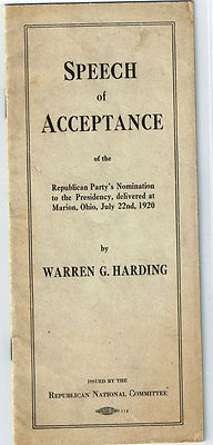 Title (ebay affiliate link): W.G. HARDING'S 1920 REPUBLICATION NOMINATION ACCEPTANCE SPEECH