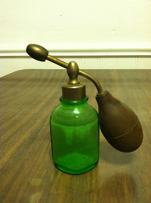 Title (ebay affiliate link): 1930s HOLMSPRAY VINTAGE MEDICAL ATOMIZER-Green Depression Glass-Des Pat 92148