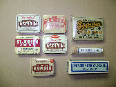 Title (ebay affiliate link): 7-OLD VINTAGE MEDICINE BOTTLES-TINS =ADVERTISING- PILLS=SUPER