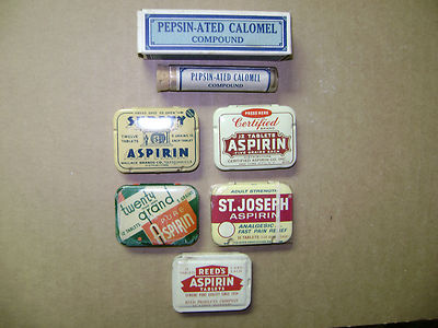 Title (ebay affiliate link): 6-OLD VINTAGE MEDICINE BOTTLES-TINS =ADVERTISING- PILLS=SUPER