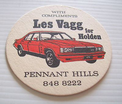 ORIG 70's PROMOTIONAL HOLDEN GTS MONARO BEER COASTER FX FJ FE EJ EH HR HK HQ HX