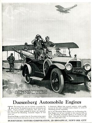 Title (ebay affiliate link): 1917 DUESENBERG MOTOR AD. BIDDLE Dispatch Car - MINEOLA AVIATION Field, LI, NY