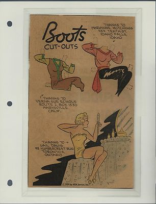 *Boots*1958 Cut-Outs - Newspaper Paper Dolls - Archival Mounted - Vintage - #174