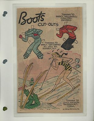 Title (ebay affiliate link): *Boots* Cut-Outs - 2/2/1958 - Newspaper Paper Dolls - Archival Mounted - #181
