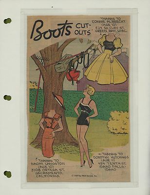 Title (ebay affiliate link): *Boots* Cut-Outs - 11/1/1959 - Newspaper Paper Dolls - Archival Mounted - #195