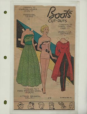 Title (ebay affiliate link): *Boots* Cut-Outs - 5/8/1960 - Newspaper Paper Dolls - Archival Mounted - #224