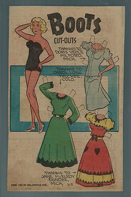 Title (ebay affiliate link): *Boots* Cut-Outs -6/3/1951- Newspaper Dolls - Archival Mounted - #270