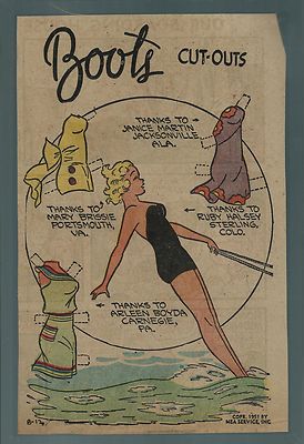 Title (ebay affiliate link): *Boots* Cut-Outs -8/12/1951- Newspaper Dolls - Archival Mounted - #276