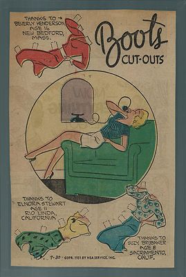 Title (ebay affiliate link): *Boots* Cut-Outs -9/30/1951- Newspaper Dolls - Archival Mounted - #282