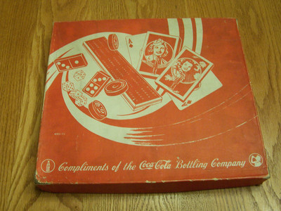 Title (ebay affiliate link): VINTAGE 1940'S COCA-COLA GAME BOX-CRIBBAGE BDS-DICE-RULES-CHECKERS/CRIBBAGE ETC.