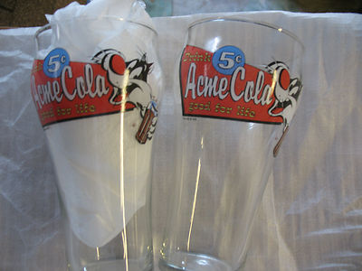 Vintage Two (2) Acme 5 Cent Coke Cola Glasses with Sylvester the Cat New!!