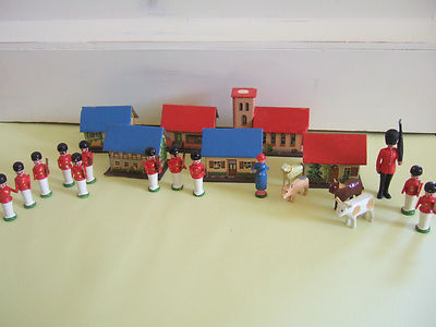 Title (ebay affiliate link): 23 Vintage Wood Cardboard Village House Church Farm Animal Soldier-Germany