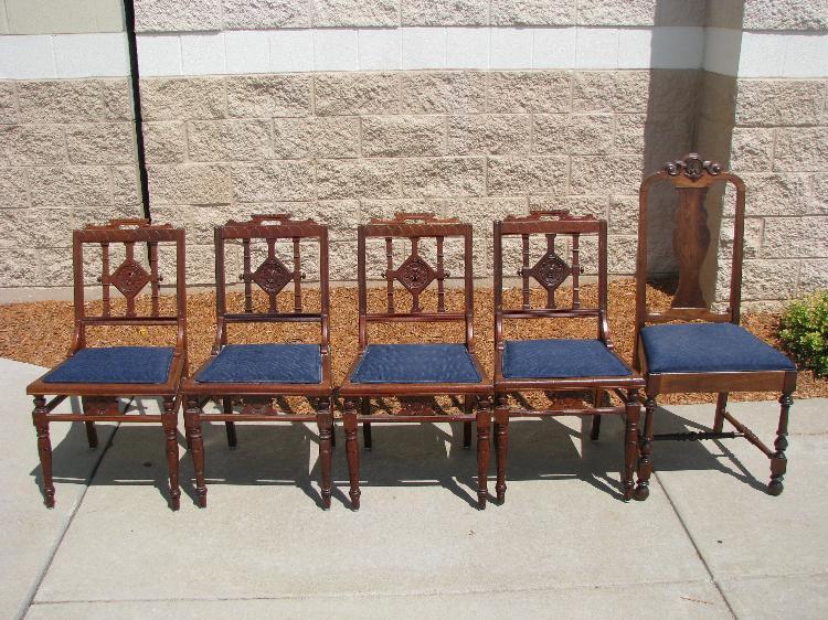 4 ANTIQUE EASTLAKE STYLE OAK DINING CHAIRS + BONUS