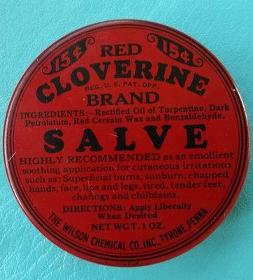 RED CLOVERINE SALVE BRAND ROUND TIN