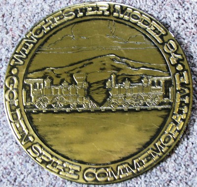 Title (ebay affiliate link): WINCHESTER MODEL 94 GOLDEN SPIKE COMMEMORATIVE DEALER 9" DISPLAY MEDALLION