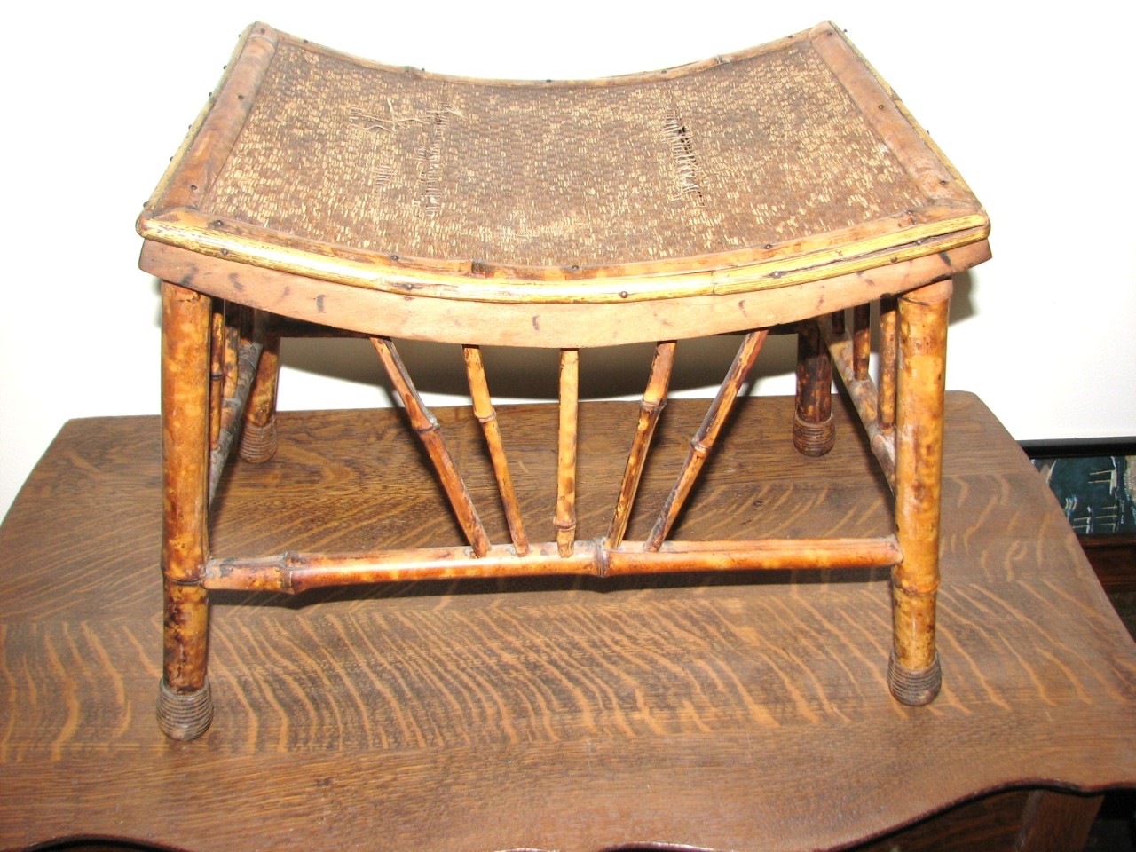 Title (ebay affiliate link): ANTIQUE WICKER CANE RATTAN FOOT STOOL BAMBOO SEAT