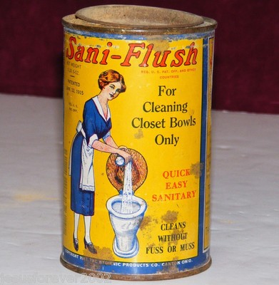 Title (ebay affiliate link): ANTIQUE 1915 SANI FLUSH HYGIENE SANITARY TOILET HOME DECOR CAN TIN CANTON, OHIO